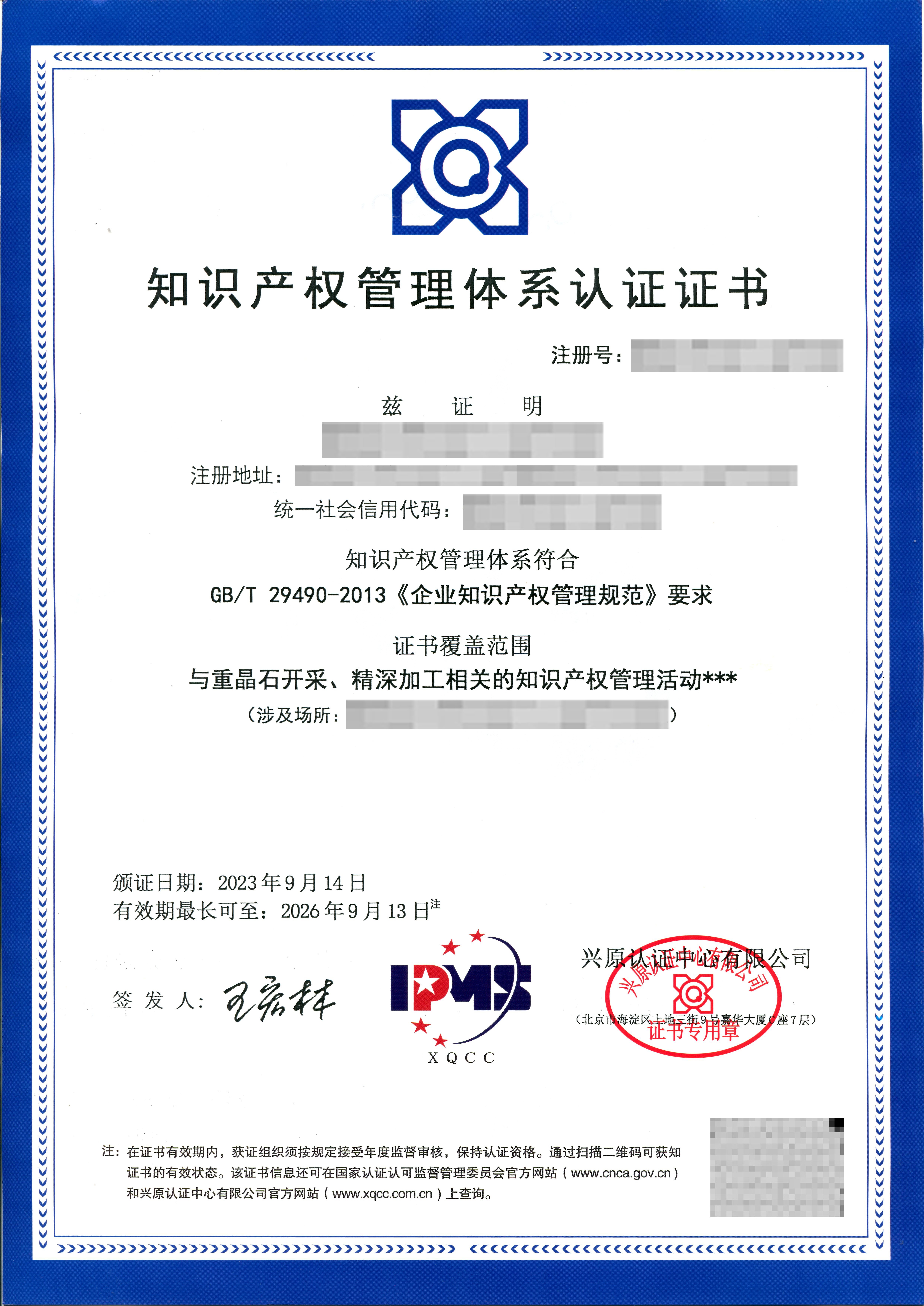 知识产权贯标证书